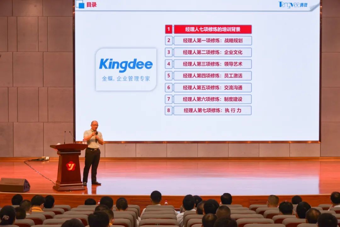 本期培训班还邀请广东腾微智数科技有限公司总经理刘海蛟博士作为特约讲师,为大家讲授《职业经理人的七项修炼》课程。培训班学员代表谢佳博在活动中作发言,现场参加人员还集中观看了廉洁自律警示视频《一念之间》和《三招识人术》教育视频,并举行集体宣誓仪式。