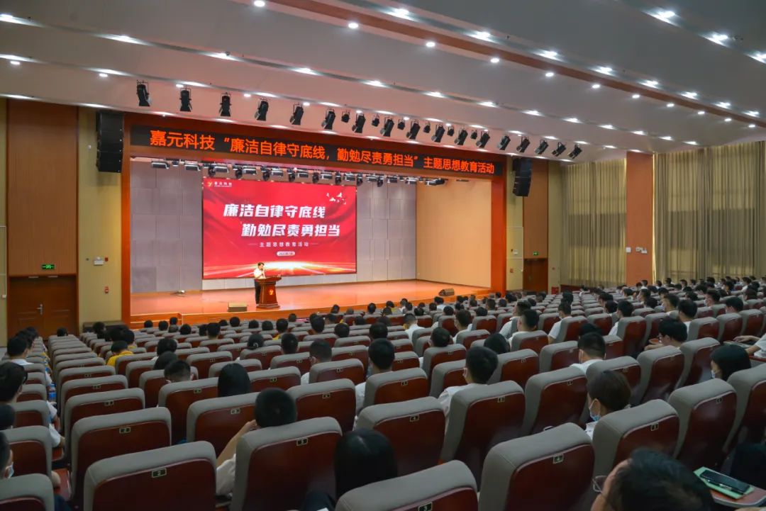 为团结带领全体嘉元人守住廉洁底线、勤勉尽职尽责、勇于担当作为,推动企业在未来更加激烈的市场竞争中掌握主动权,实现持续高质量发展,7月10日上午,嘉元科技在雁洋总部千人会议厅举行“廉洁自律守底线,勤勉尽责勇担当”主题思想教育活动动员大会、2023管理干部培训班(生产系统)开班仪式。董事长廖平元、总裁杨剑文、联席总裁刘少华、执行总裁杨锋源、常务副总裁李建国和副主任及以上管理人员、行政人员、本科学历人员、子公司在总部人员及管理干部培训班学员等近300人参加活动。