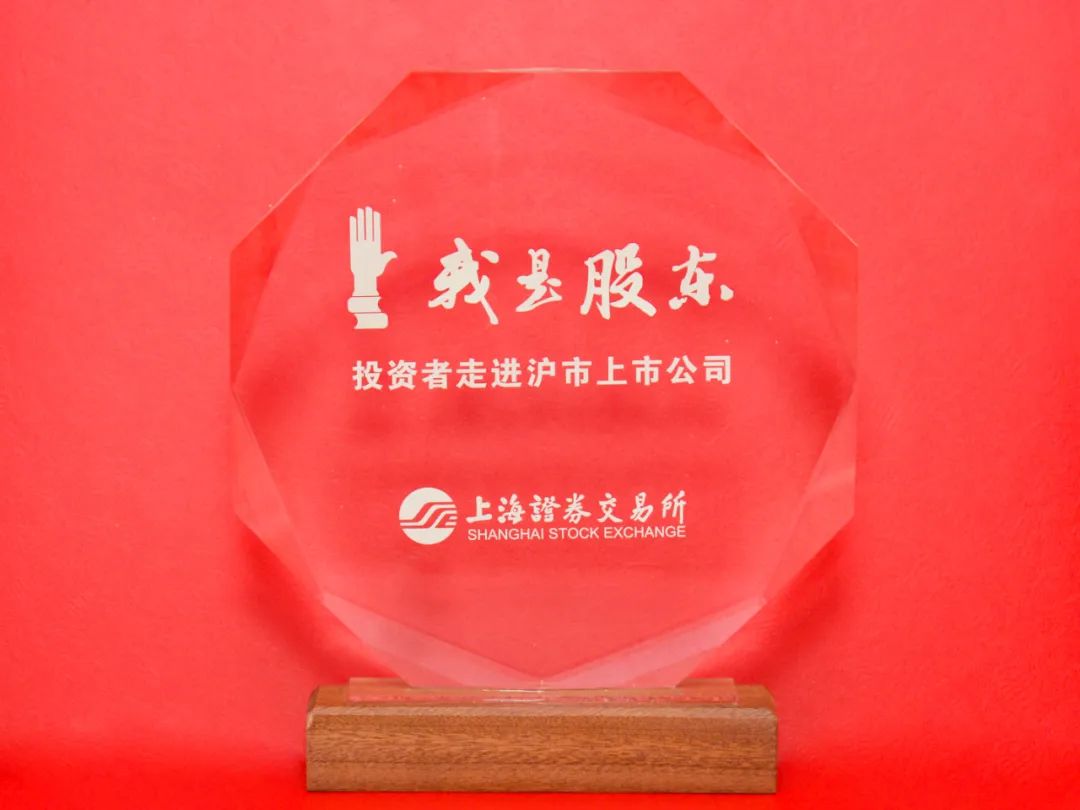 近日,嘉元科技获得由上海证券交易所颁发的“我是股东”投资者走进沪市上市公司活动纪念奖杯。