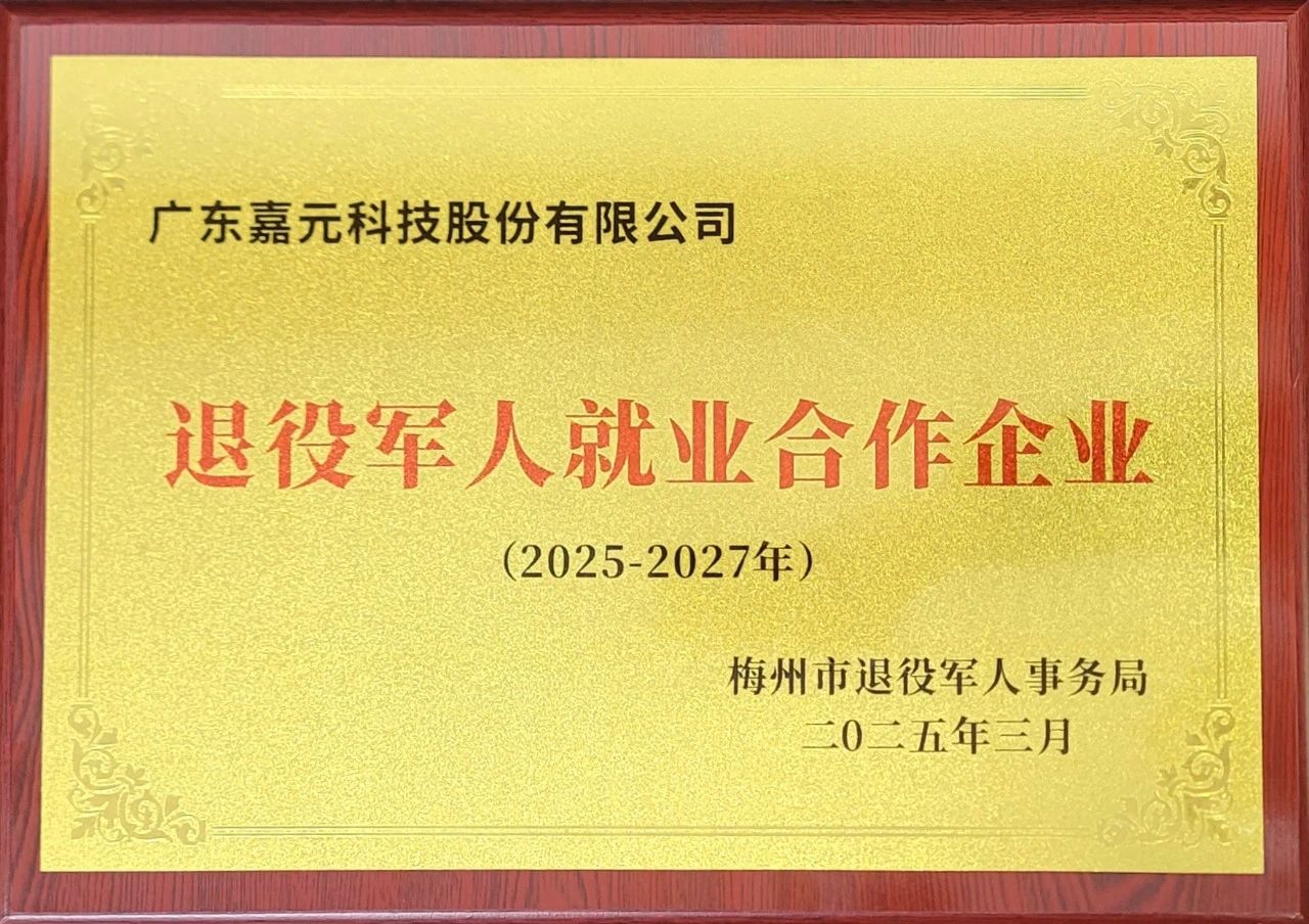 活动对为退役军人提供大量就业岗位和职业发展机会的优秀企业进行了表彰。其中,广东嘉元科技股份有限公司作为梅州的本土企业,在促进退役军人就业方面作出了积极贡献,被授予"梅州市退役军人就业合作企业"称号。公司自成立以来,高度重视社会责任,积极支持退役军人就业,目前在职退役军人共35人。在退役军人就业过程中,公司提供了多元化的岗位选择,制定了专属的培养计划,真正实现了“人尽其才”。