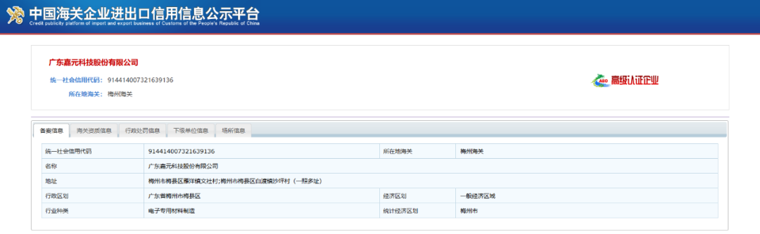近日,经过严格的资质审核与综合评估,公司正式获得海关AEO高级认证,成功跻身海关最高信用等级企业行列。这是对公司合规管理、贸易安全及国际竞争力的高度认可,更是嘉元科技发展历程中的一座重要里程碑!