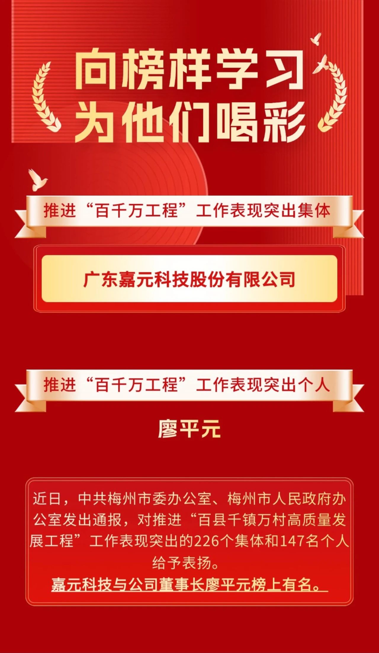 接下来,嘉元科技将以本次获得荣誉为新的起点,再接再厉、担当作为,继续为“百千万工程”贡献嘉元力量。