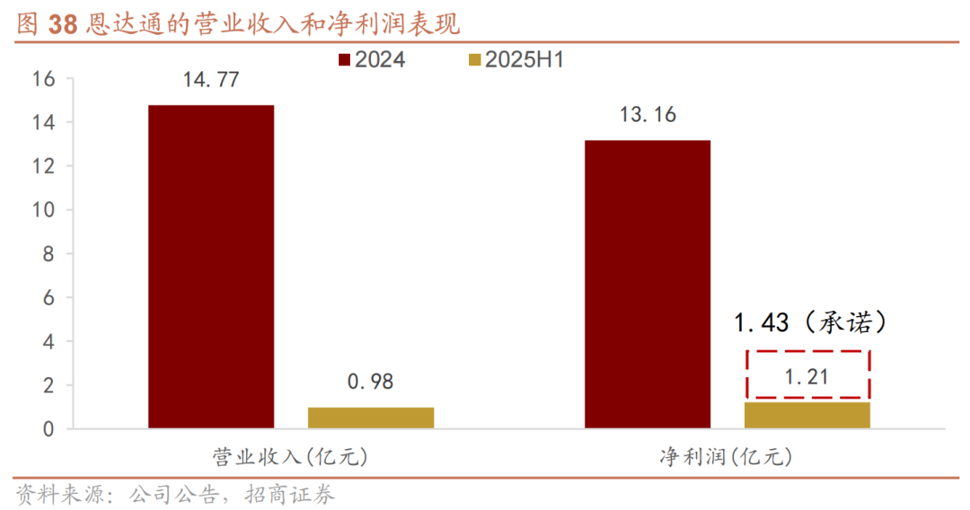 实现快速增长,对标同业头部公司有提升潜力。2024年,恩达通实现营业收入14.77亿元、净利润9794.21万元。恩达通原股东承诺2025年净利润不低于1.43亿元,但2025年上半年就实现收入13.16亿元、净利润1.21亿元,业绩基本追平2024年去年。