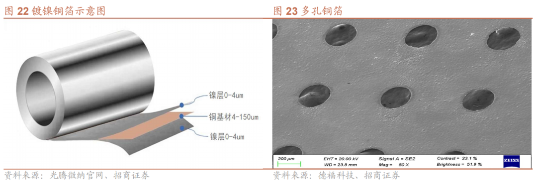 为了满足日渐提高的下游需求,产业也在就其他铜箔技术进行积极探索,如德福科技的多孔铜箔、雾化铜箔(泡沫铜)等技术能够满足电池更高的能量密度、更长的锂电寿命、更适配锂金属负极等需求。
