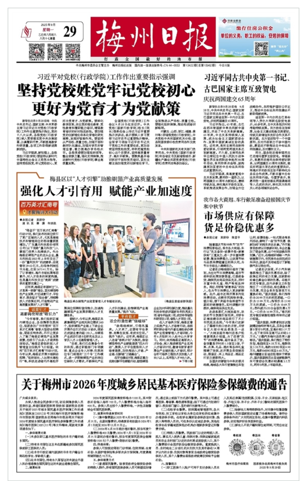 9月29日,梅州日报头版以《强化人才引育用赋能产业加速度》为题,报道梅县区以“人才引擎”助推铜箔产业高质量发展的有关情况。