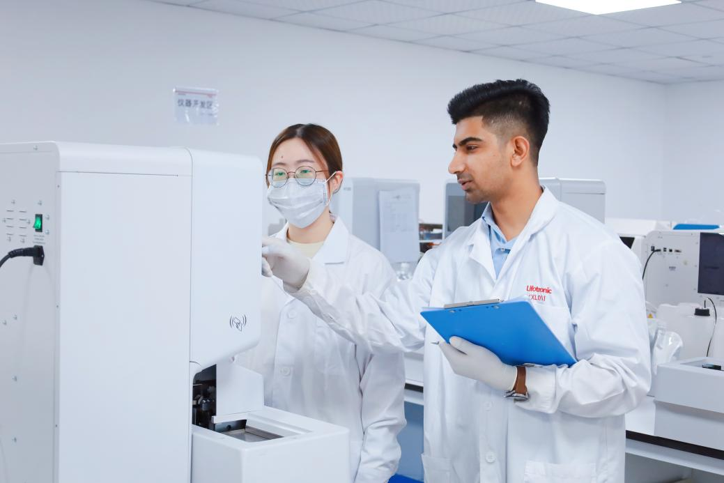 普门科技研发人员在进行设备测试
