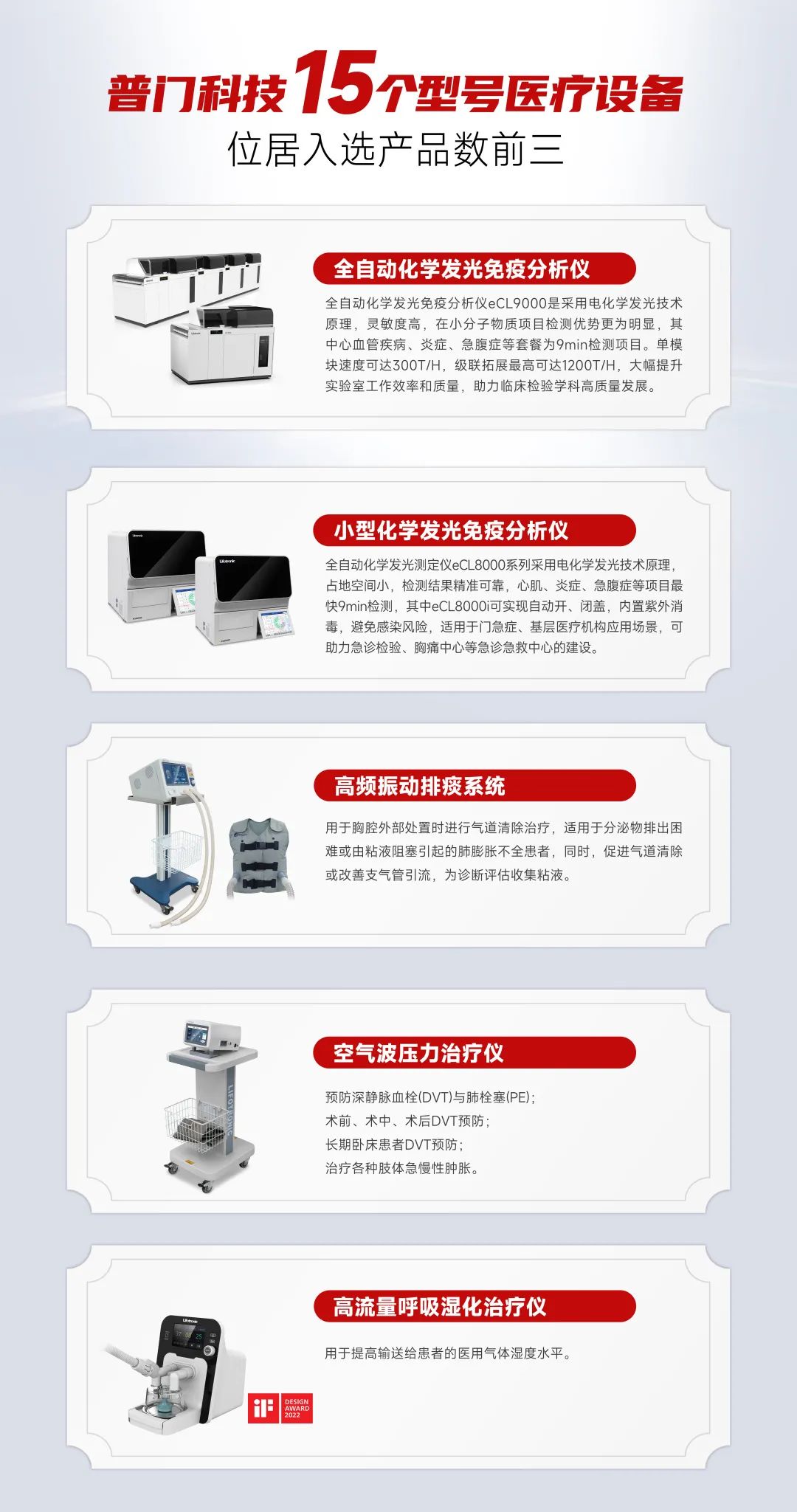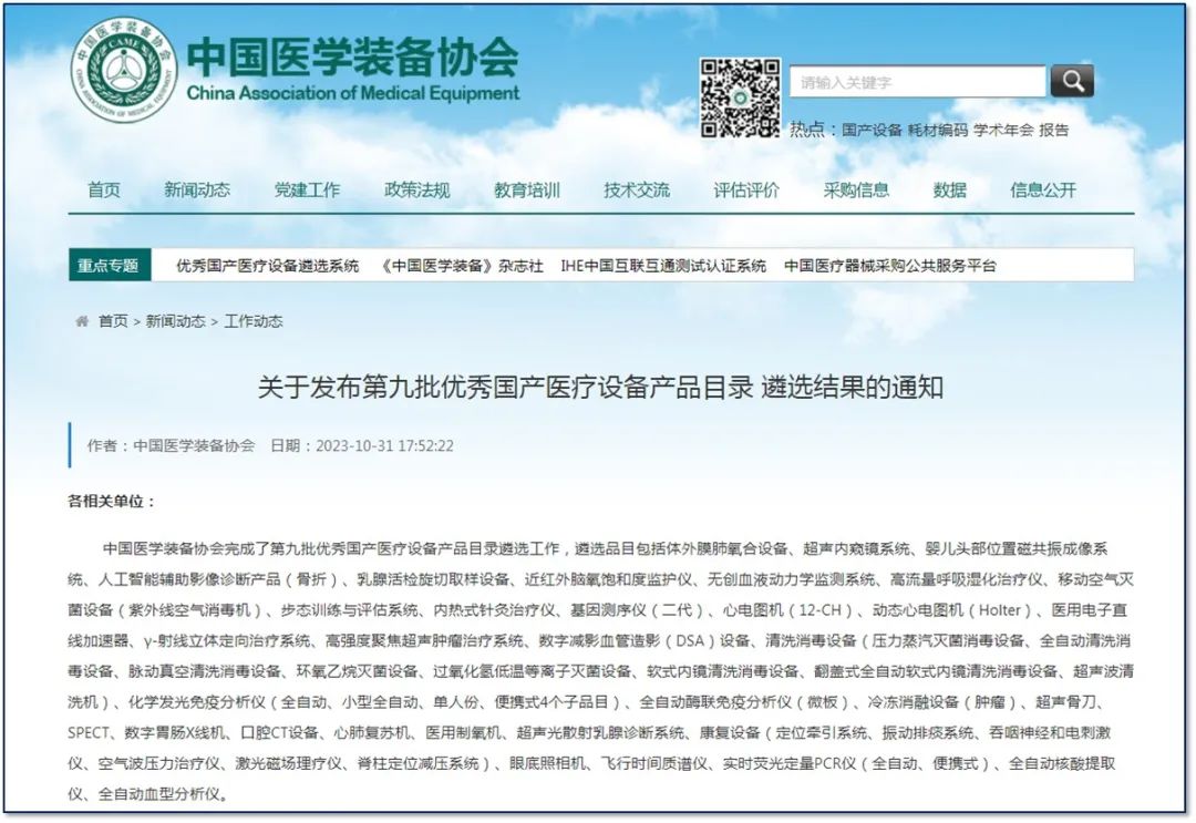 10月31日,中国医学装备协会公布第九批优秀国产医疗设备产品遴选评审结果,普门科技旗下五类15款医疗设备荣誉上榜,这既是对普门科技产品价值的高度认可,也是对普门科技坚持研发创新的肯定与鼓舞。
