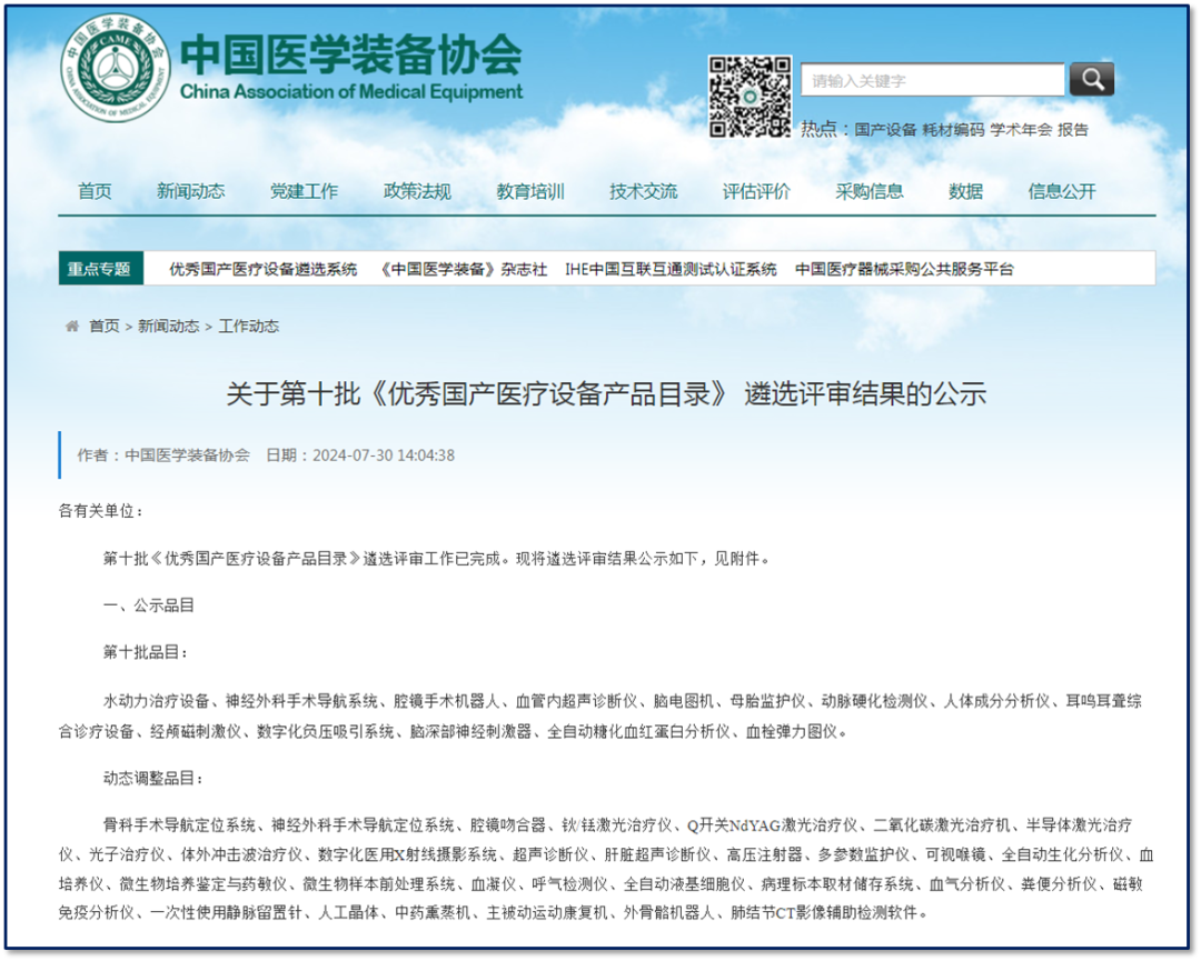 为促进我国企业医学装备的发展,提高其性能质量和安全有效临床应用,中国医学装备协会开展优秀国产医疗设备产品目录的遴选工作,旨在通过筛选一批符合临床需要、技术先进、质量优良的优秀国产设备。
