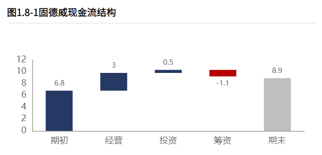 固德威2021年经营活动现金净流入2.96亿元,投资活动净流入0.51亿元,筹资活动净流出1.11亿元,本年度共实现2.10亿元的现金净流入。