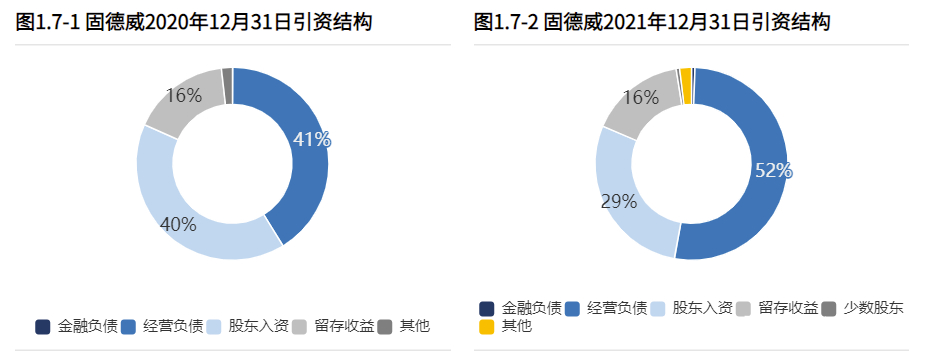从合并报表的负债及所有者权益结构来看,集团的资本引入均衡利用经营负债、股东入资。其中,经营负债是资产增长的主要推动力。与2020年12月31日相比,经营性负债占比明显增长,股东入资占比明显降低,公司在资金来源上表现出经营性负债支撑度增加的趋势。