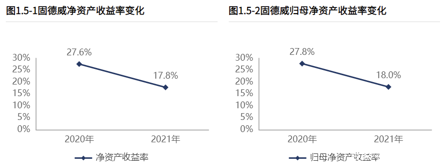 2021年固德威净资产收益率17.77%,相较于2020年股东回报水平降低;归母净资产收益率17.96%,相较于2020年对母公司股东回报水平降低。