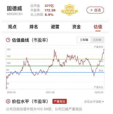 以近三年市盈率为评价指标看,固德威估值曲线处在严重高估区间。未来走势如何,除了对基本面的分析与资金面的观察外,还受市场情绪等多种因素左右。