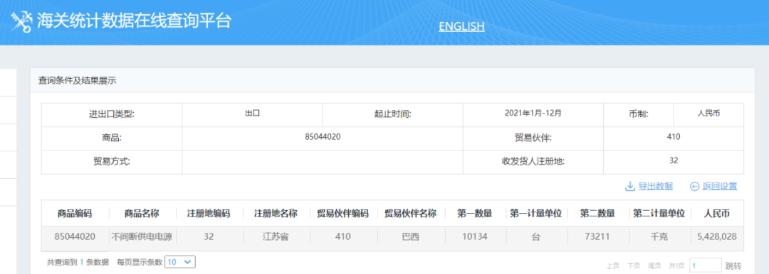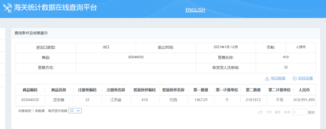 2021年全年,逆变器、不间断供电电源两类产品,由江苏出口至巴西的总额为4.16亿元;由广东出口至巴西的总额为15.47亿元。这意味着在这两类产品中,按固德威披露的2021年在巴西的销售额来看,相当于江苏省当年出口额的一半;而古瑞瓦特披露的在巴西的销售额,也相当于广东省出口额的一半。
