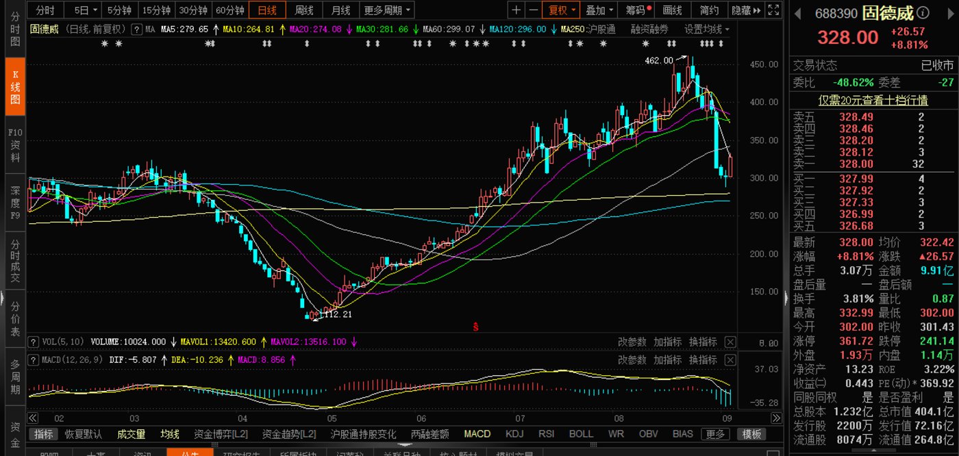 一般而言,个股限售股迎来解禁被视为利空,多数个股股价会承压。不过,从9月5日固德威的股价走势看,扛住了压力测试。交易行情显示,固德威9月5日收涨8.81%,收328元/股。
