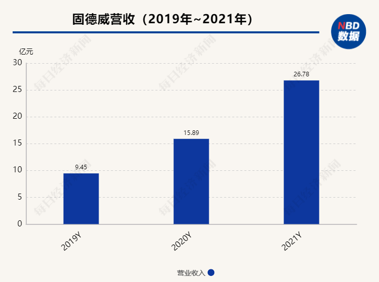 以近三年为例,2019年-2021年,固德威分别实现营业收入9.45亿元、15.89亿元、26.78亿元,同比上涨13.15%、68.09%、68.53%;实现归母净利润1.03亿元、2.6亿元、2.8亿元,同比上涨83.47%、153.16%、7.4%。