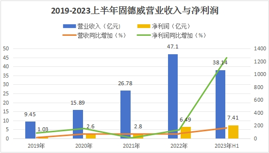 2023上半年,公司实现营收38.14亿元,同比增长162.61%,实现净利润7.41亿元,同比增长1256.21%。