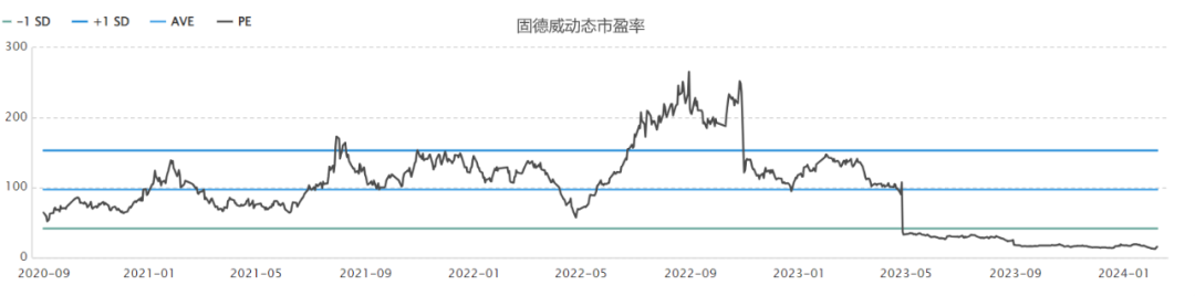 固德威目前市值192亿,2023年预期净利润为12.16亿,动态市盈率16倍,处于近三年低位区间。