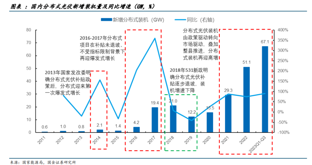 同年国内光伏新增装机87.41GW,分布式光伏新增装机就有51.11GW,高达58.5%占比过半。其中户用光伏装机量25.25GW,工商业分布式为25.86GW。