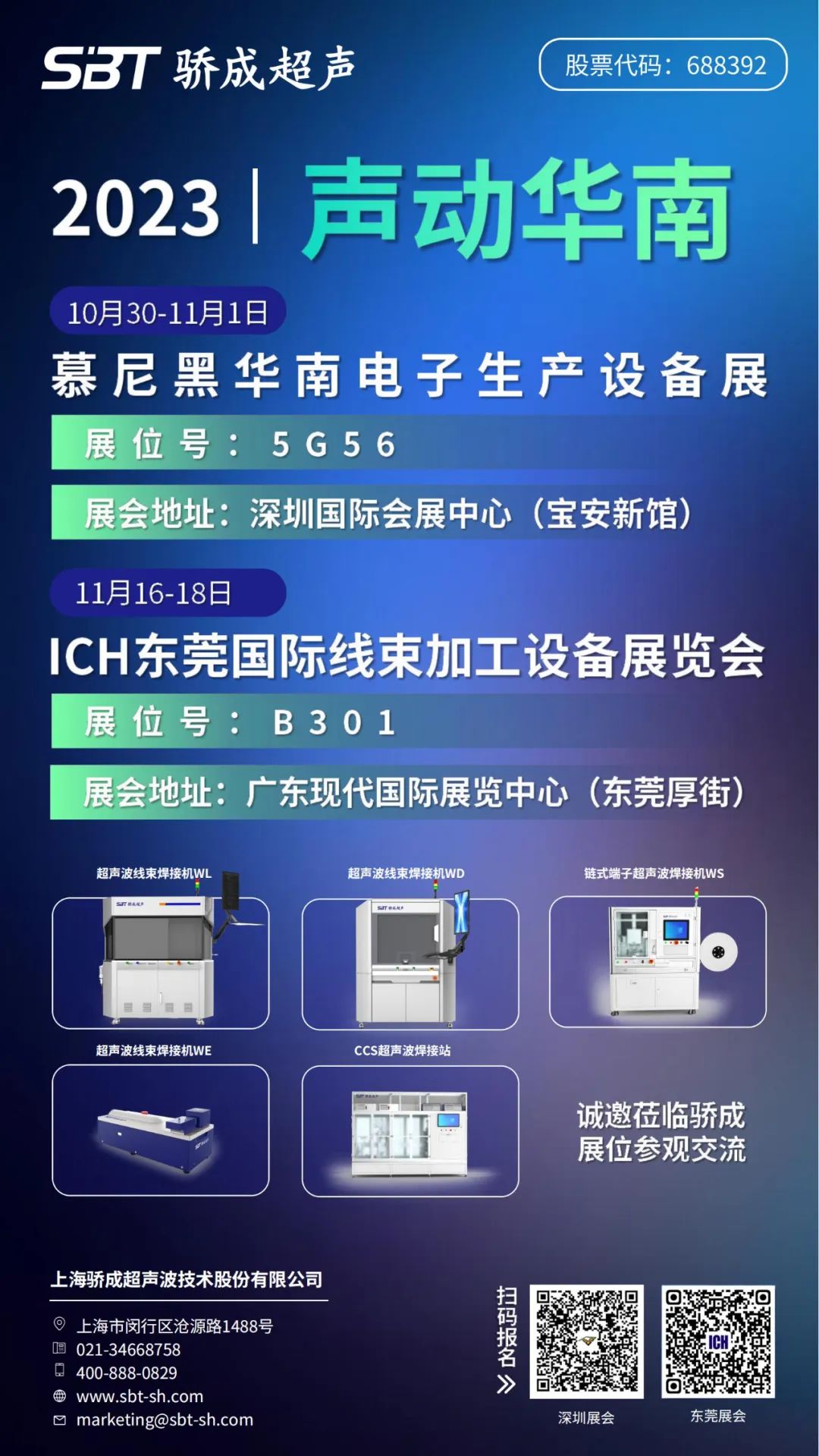 骄成超声即将亮相慕尼黑华南电子生产设备展、ICH东莞线束加工设备展