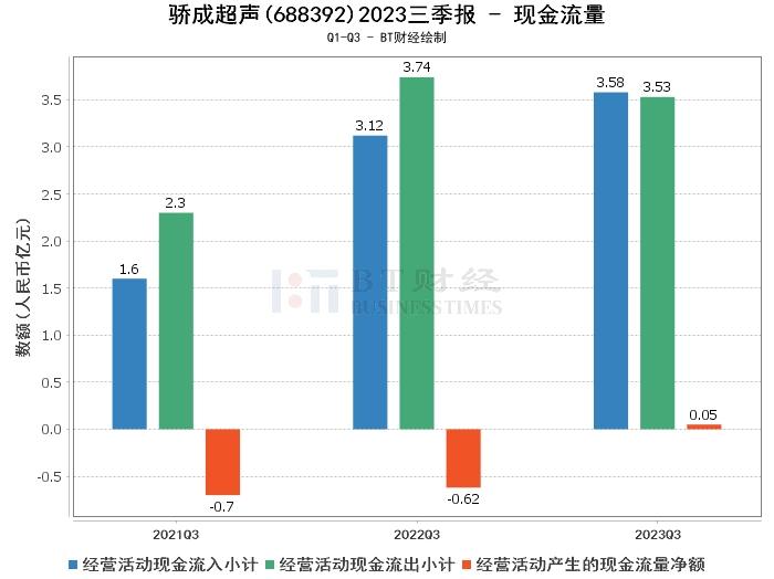 综上所述,骄成超声在2023年三季度的经营状况整体稳健。尽管营业利润和净利润相比上年同期有所下滑,但公司的营业收入和现金流量净额均有所增长,显示出公司的经营活动稳健。此外,值得一提的是,公司在研发方面的投入显著增长,这对于一个以技术为核心的公司来说,无疑是对未来发展的有力投入。