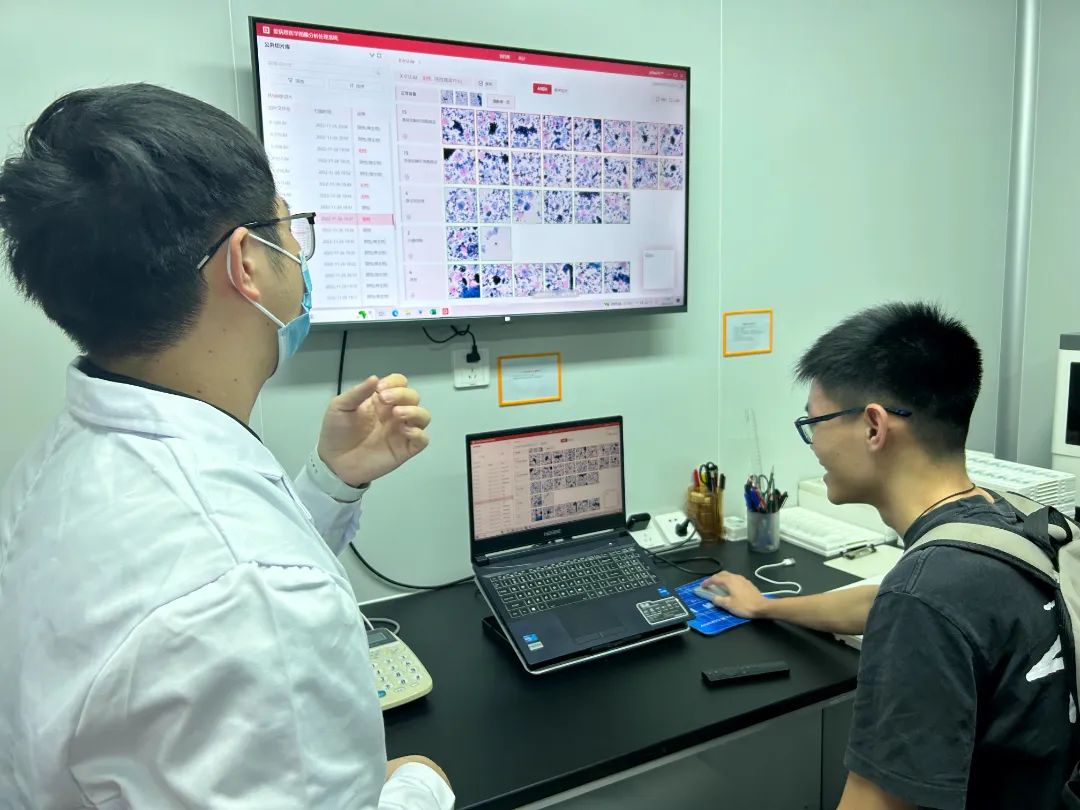 高级研发项目经理陈勉乔介绍了目前公司的产品以及技术平台。目前公司自主开发了沉降式液基细胞学、聚合酶链式反应、免疫组织化学、荧光原位杂交和相关配套设备及系统等多项核心技术,并将互联网、大数据、云计算、人工智能AI等前沿技术运用到体外诊断领域,打造线上线下一体化的病理生态圈,是国内病理诊断领域产品线最齐全、种类最丰富的企业之一。