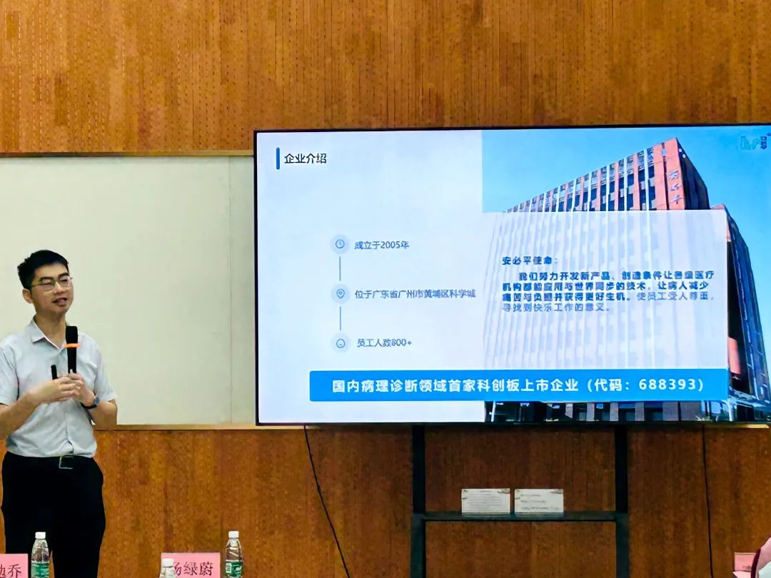 安必平招聘经理符健首先就公司企业文化,发展历程,业务产品等方面开展了详细的介绍。安必平专注于肿瘤筛查与精准诊断,围绕病理科“四化”建设,聚焦肿瘤筛查与精准诊断领域,多年深耕医院病理科,通过提高病理科的自动化、标准化、数字化、智能化水平,帮助病理医生提高诊断效率与准确性。同时通过“产品+服务”的病理能力提升整体解决方案,助力基层病理科能力提升,促进中国病理事业持续向好发展,助力“健康中国”战略深入实施,用精准医学诊断造福社会。