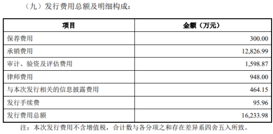 汇成股份发行费用总额为16,233.98万元,其中海通证券获得保荐、承销费用共计13126.99万元。