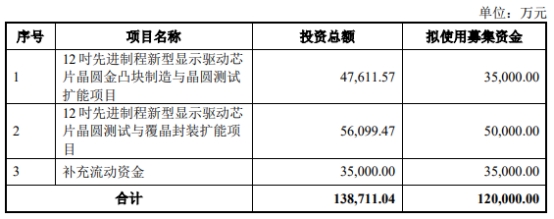 汇成股份首次公开发行募集资金总额为148,269.94万元,实际募集资金净额为132,035.96万元。汇成股份最终募集资金净额比原计划少24351.03万元,该公司于2022年8月12日披露的招股说明书显示,公司拟募集资金156,386.99万元,分别用于12吋显示驱动芯片封测扩能项目、研发中心建设项目、补充流动资金。