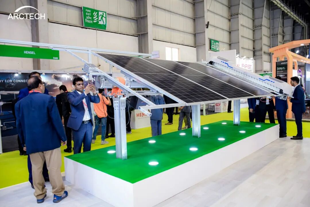 印度作为全球增长最快的可再生能源市场之一,正积极推进“2070碳中和”目标,并计划到2030年实现500GW以上非化石燃料装机容量,占总装机的50%。中信博深度洞察印度市场需求,在本次展会现场重点展出了“跟踪+”与“绿电+”解决方案。