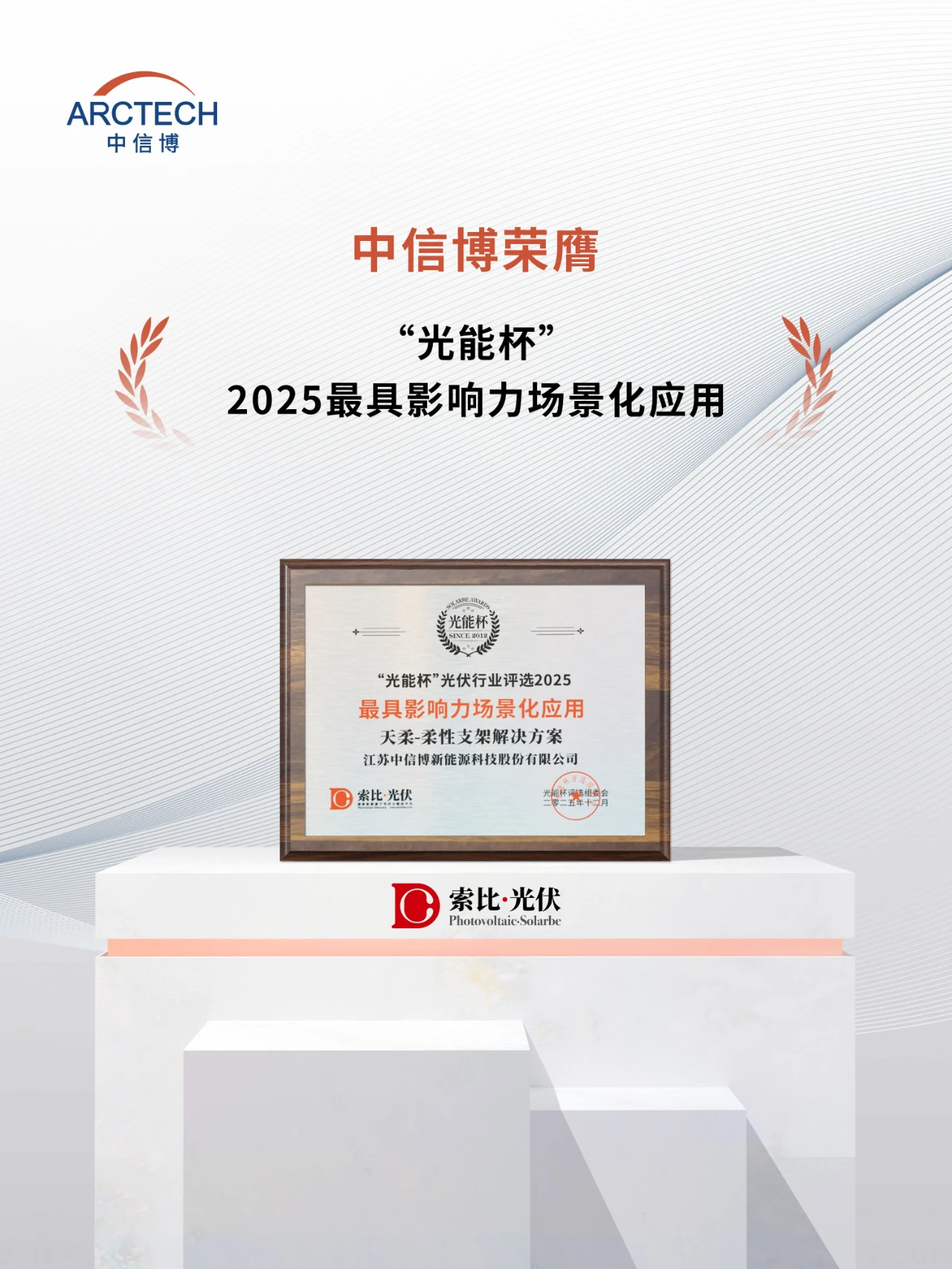 近日,在由索比·光伏举办的第七届碳索企业家跨年分享会暨第十三届光能杯光伏行业颁奖盛典上,中信博凭借领先技术创新实力及行业领导力再度荣膺“最具影响力光伏支架企业”,同时企业“天柔-柔性支架解决方案”斩获“最具影响力场景化应用”奖项。