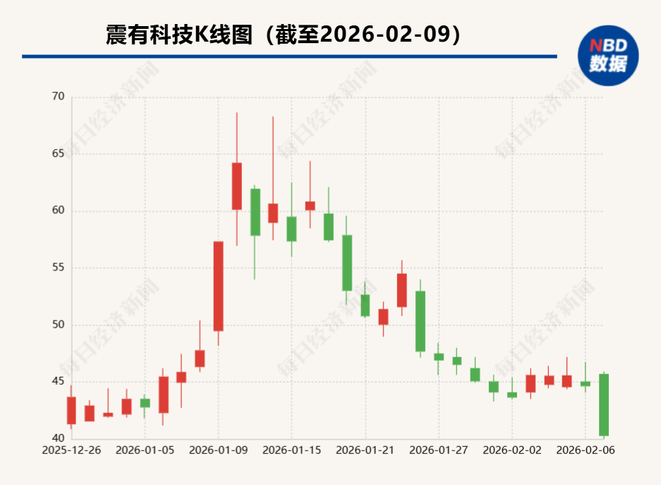 今年1月,资本市场对“商业航天”“卫星互联网”等概念关注度较高,震有科技股价曾在1月多次活跃上涨。不过,公司曾披露称,2025年前三季度公司在卫星互联网领域的收入占整体营业收入的比例约为7.15%,占比较低,未对公司业绩构成重大影响。