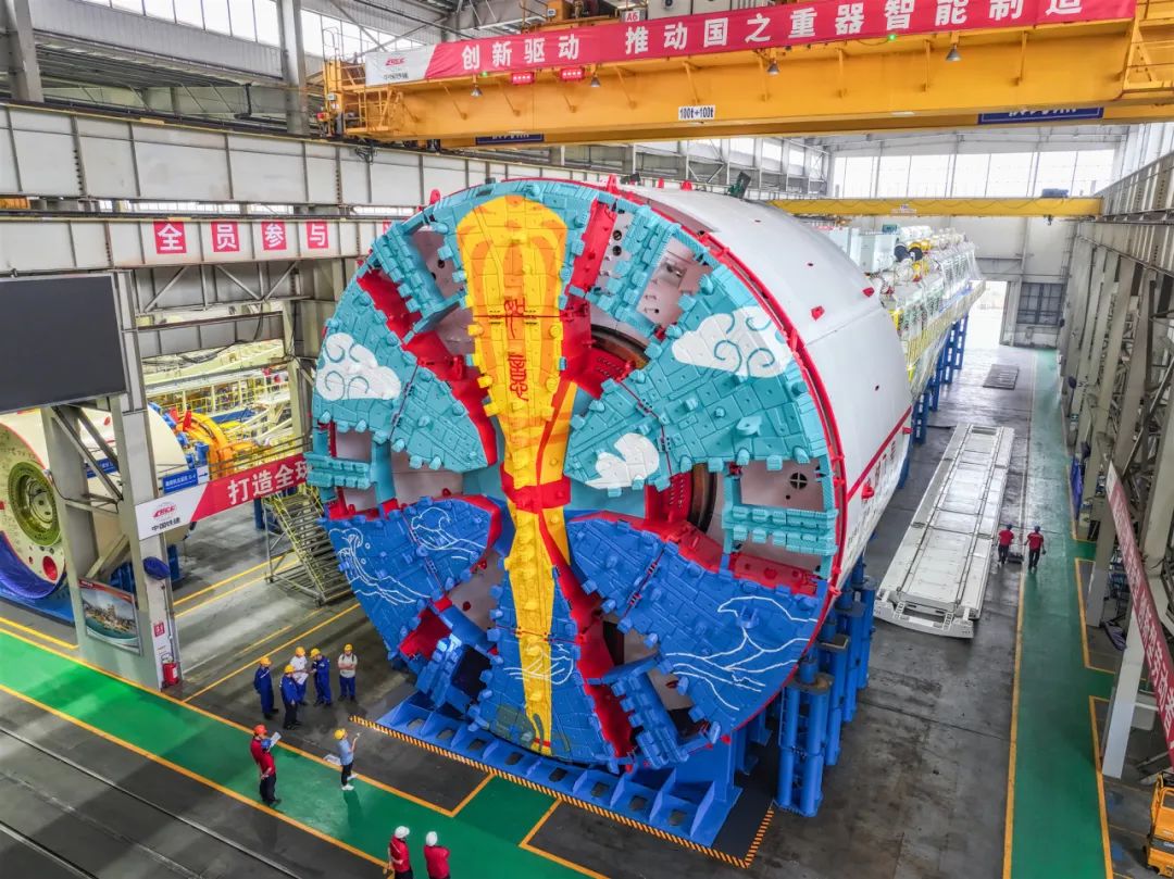 10月19日上午,由铁建重工和中铁十四局共同打造的国产超大直径泥水平衡盾构机“津城1号”在铁建重工长沙第一产业园下线。该盾构机的刀盘涂装为“如意金箍棒”图案,有着“金箍定海,吉祥如意”的美好寓意。“津城1号”整机长约120米,最大开挖直径达13.72米,将成为天津独头掘进距离最长、开挖直径最大的泥水平衡盾构机。
