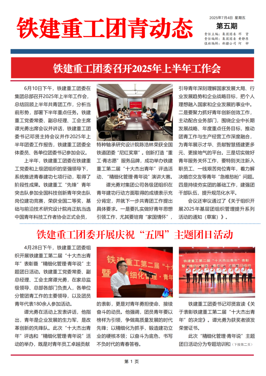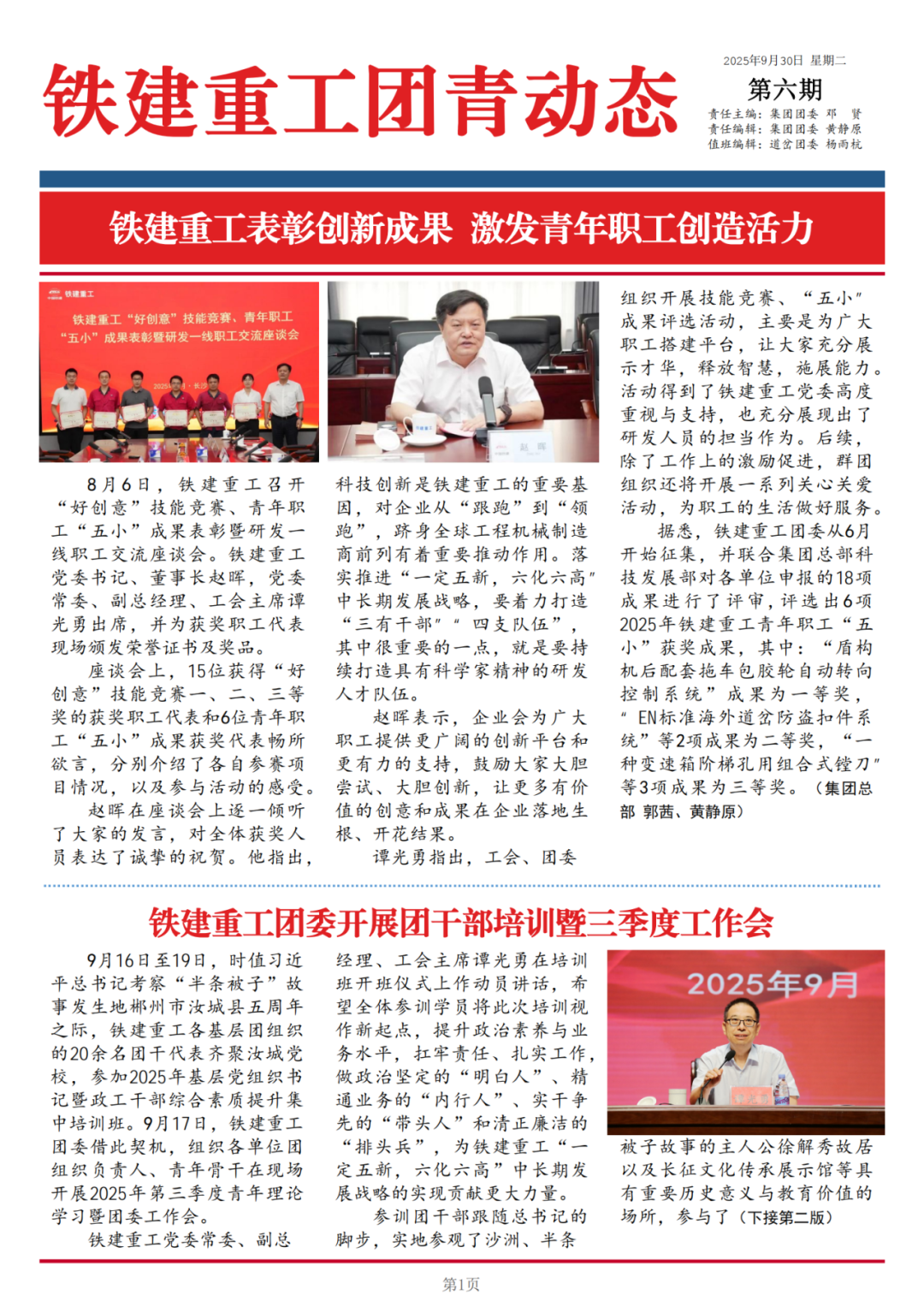 创办铁建重工共青团内刊《铁建重工团青动态》