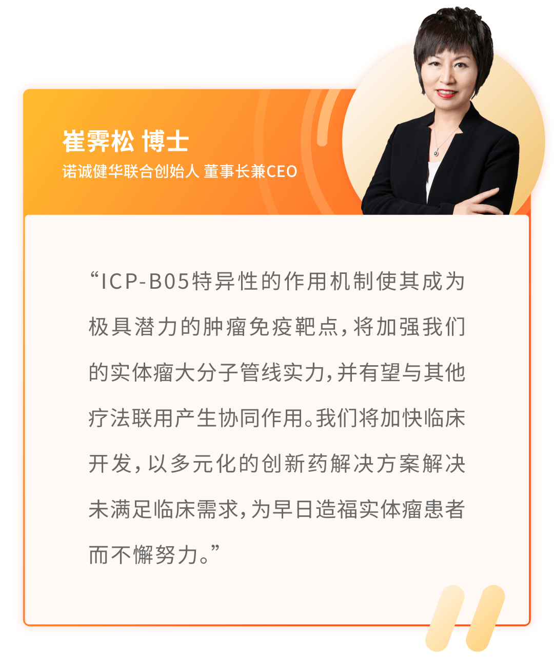 ICP-B05是诺诚健华和康诺亚共同开发的潜在first-in-class药物,将开发作为单一疗法或与其他疗法联合治疗高发的晚期实体瘤,包括肺癌、消化道癌等。