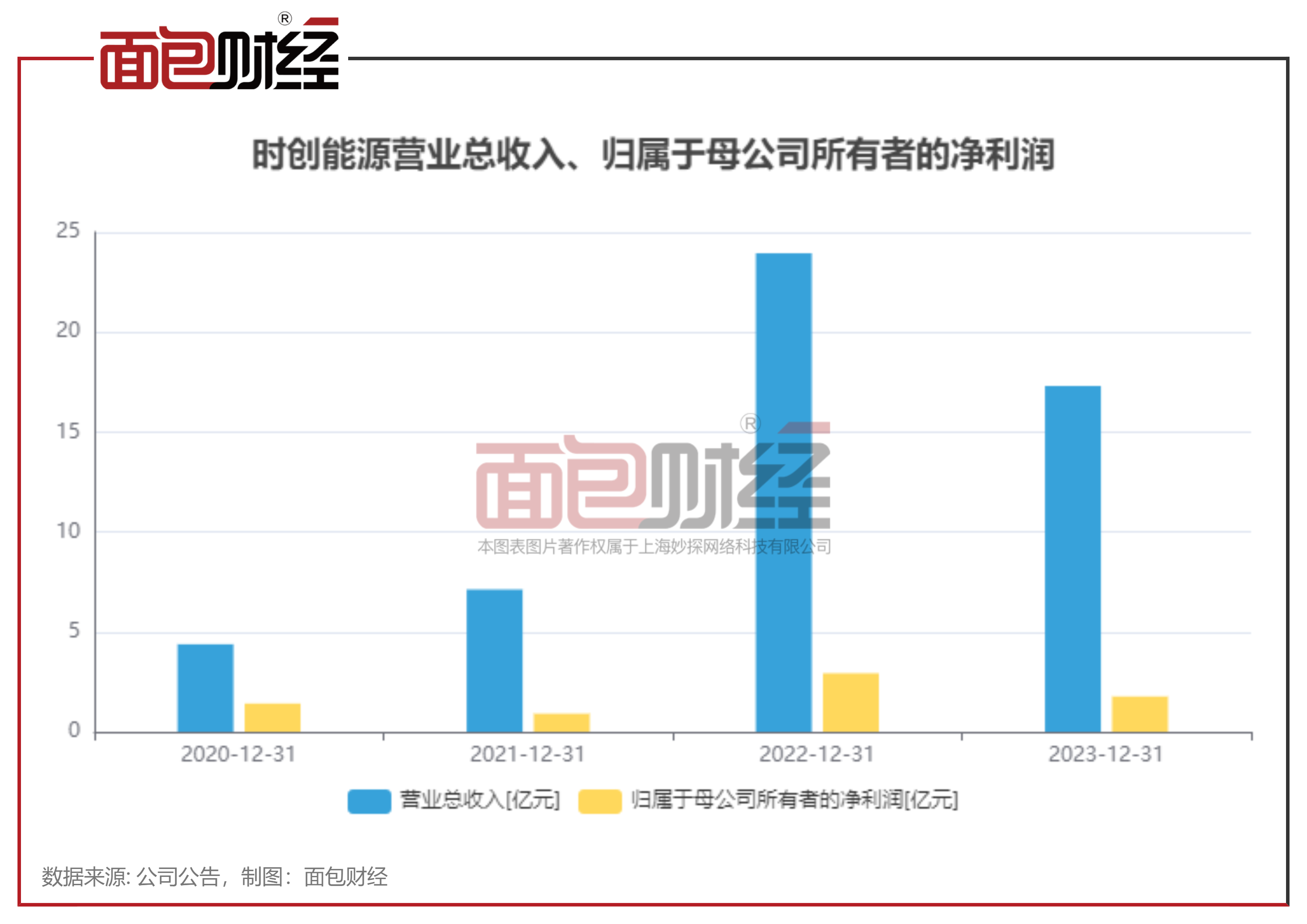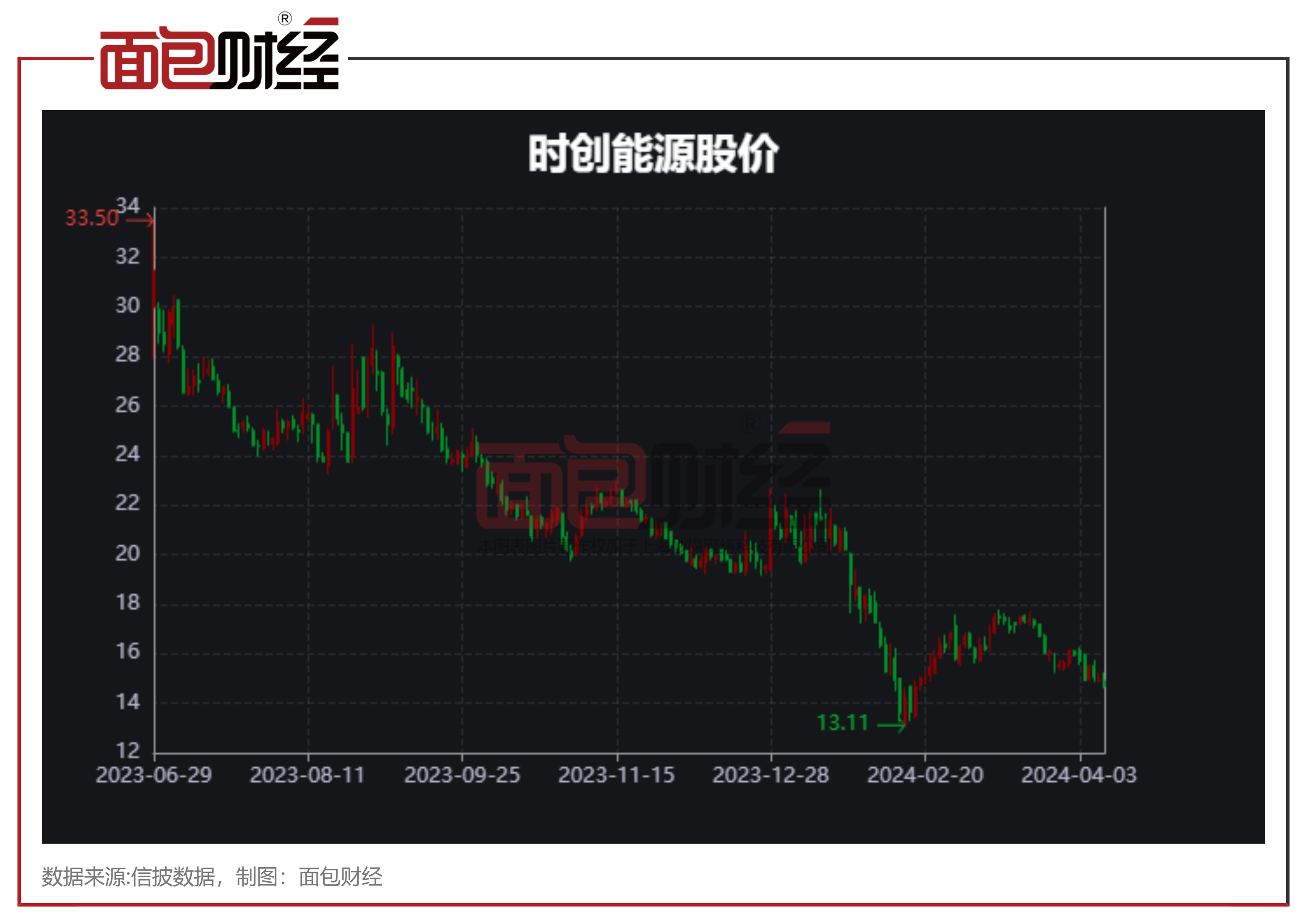 2024年4月12日,时创能源收盘价为14.69元/股,较发行价下跌超过20%。