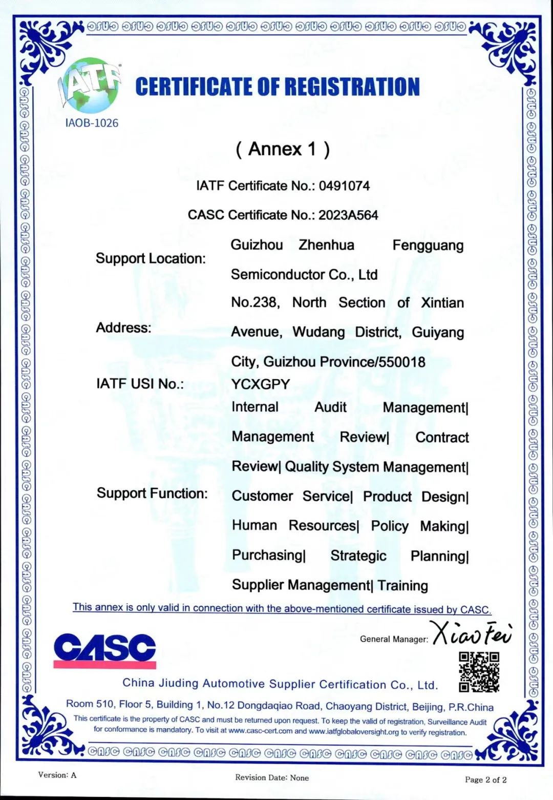 通过此项认证,标志着振华风光在汽车领域元器件产品的技术规范和质量管理标准获得了业内充分的肯定和认可,为振华风光后续相关业务拓展、项目竞标奠定了坚实基础。