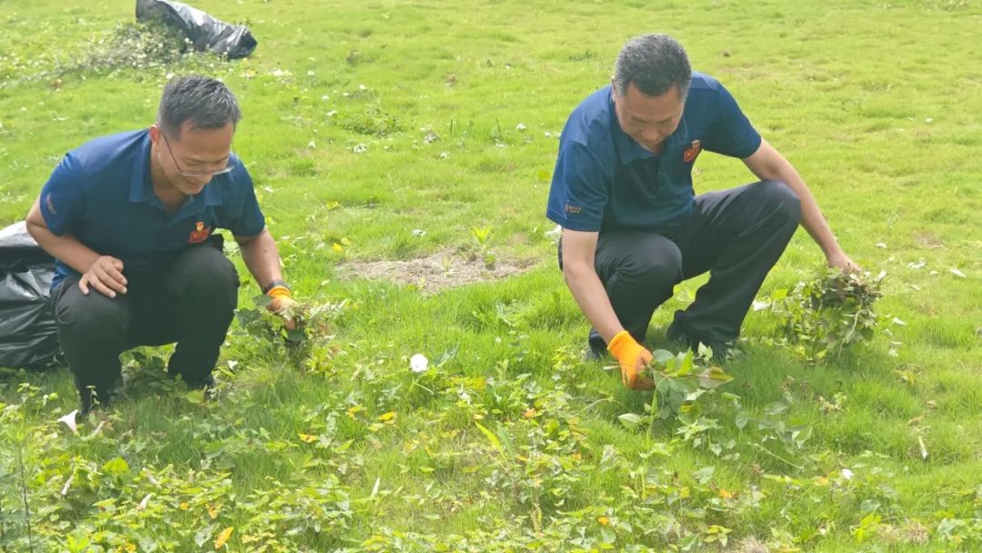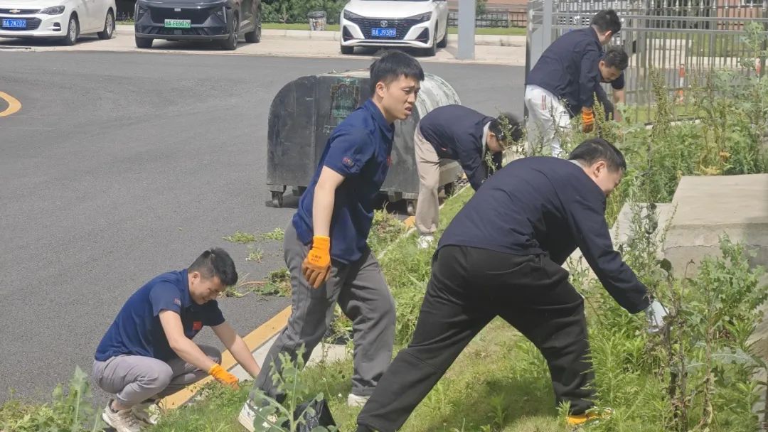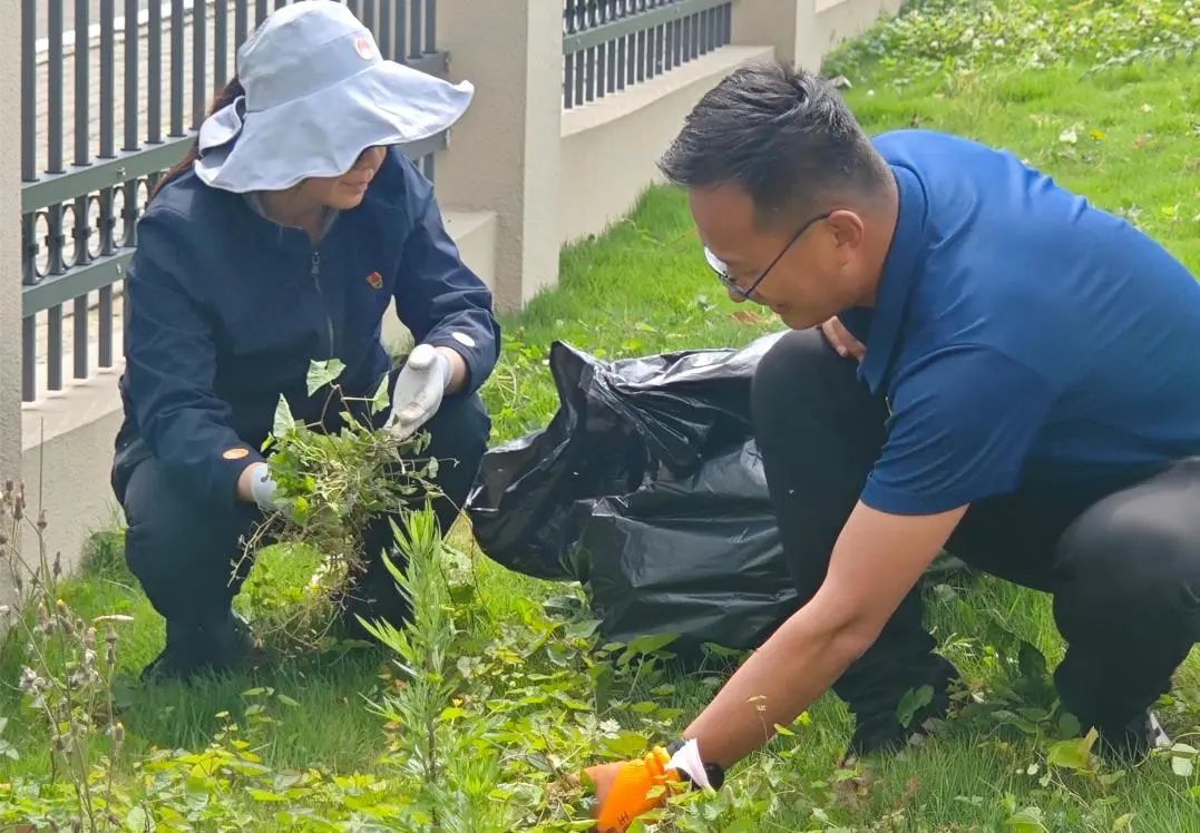 学习结束后,党员、团员青年们以青年突击队形式在沙文集成电路产业园进行了义务除草。活动中,他们干劲十足,配合默契,充分发挥团结协作精神,不怕脏、不怕苦、不怕累,不到两个小时的时间就完成了数十块草坪的杂草清理,使园区环境焕然一新。