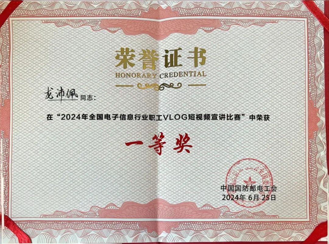 6月25日,中国国防邮电工会举办了“闪耀芯动瞬间,展现职工风采”2024年全国电子信息行业职工vlog短视频宣讲比赛,振华风光的演讲者龙沛佩用生动的事例和真挚的感情从溯源、聚力、赋能、“芯”生四个方面讲述了振华风光在五十三年发展历程中,如何将点点“芯”光汇聚成集成电路发展的璀璨星河的故事,或委婉入微、或慷慨激昂,深深打动了现场评委和观众。经过激烈角逐,最终荣获比赛“一等奖”,振华风光被授予“最佳组织奖”。