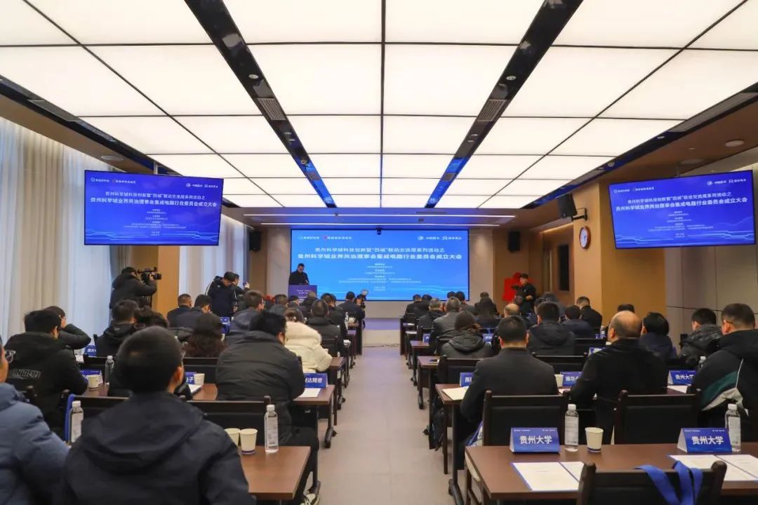 1月9日,贵州科学城科技创新暨“四城”联动交流周系列活动之贵州科学城业界共治理事会集成电路行业委员会成立大会暨第一次工作会举行,来自高校、科研机构、服务机构、企业代表,以及行业专家学者等60余人参加。