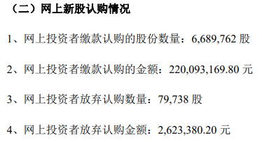 在磁谷科技的上市发行结果公告中显示,网上投资者缴款认购的股份数量为668.97万股,弃购数量为7.97万股,涉及金额262.33万元。
