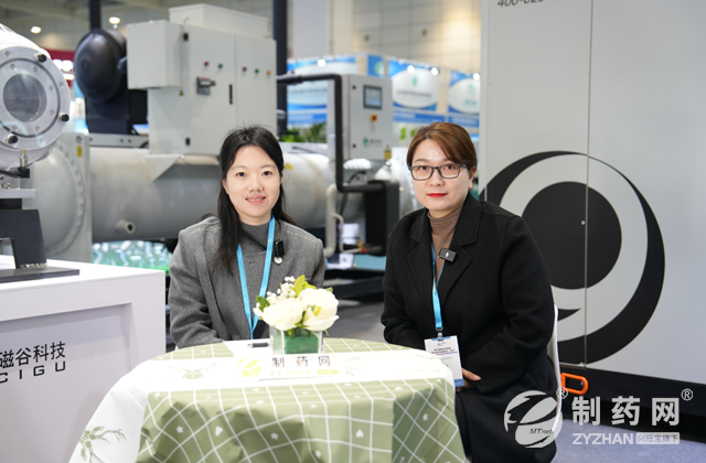磁谷科技空压机事业部副总经理黄晓利(右)接受制药网采访