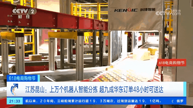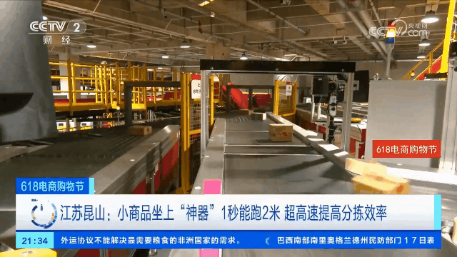 今年的618期间,总台央视记者探访打卡了目前全球规模最大的仓拣一体智能物流园区京东昆山亚一2期。在央视镜头下,由科捷智能规划提供的双轨双层小件环形交叉带分拣系统正在高效有序运转中。