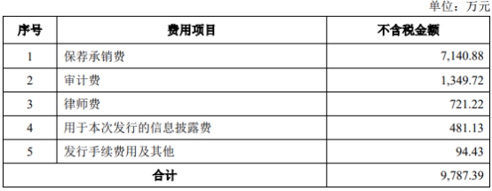 科捷智能公开发行新股的发行费用合计9,787.39万元(不含增值税),其中,保荐承销费为7,140.88万元。