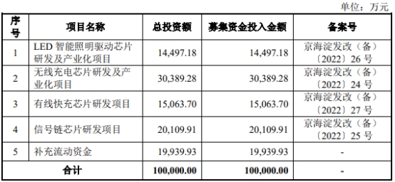 美芯晟实际募资净额比原拟募资多37,648.31万元。美芯晟2023年5月17日披露的招股书显示,公司原拟募集资金100,000.00万元,用于“LED智能照明驱动芯片研发及产业化项目”、“无线充电芯片研发及产业化项目”、“有线快充芯片研发项目”、“信号链芯片研发项目”、“补充流动资金”。