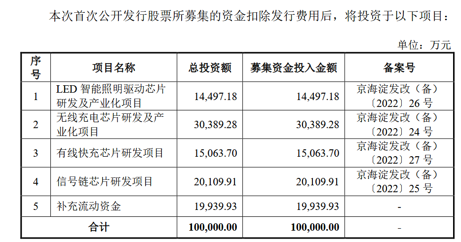 招股书显示,美芯晟计划上市募集10亿元,其中用于各类芯片研发及产业化项目约8亿元、补充流动资金约2亿元。其中各类芯片研发及产业化项目均计划在3年内完成。