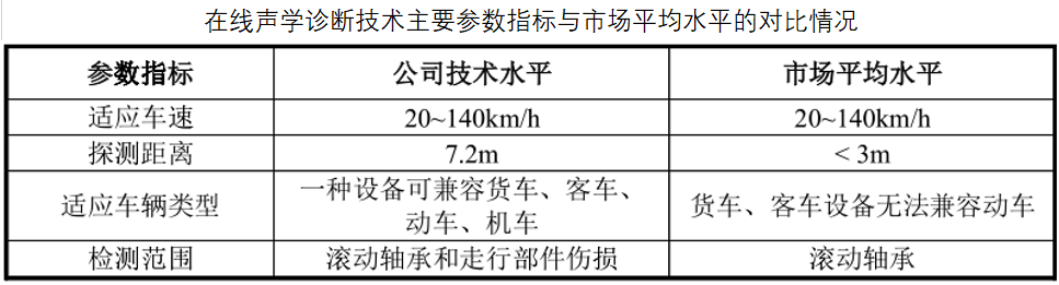 在线声学诊断技术在适应速度、工作带宽、检测范围等关键指标方面优于同行业可比产品,具备突出的技术先进性。