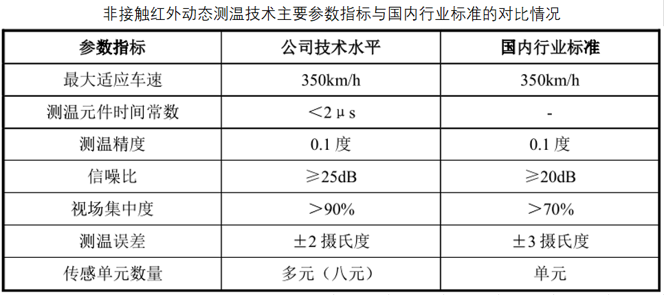 其中,非接触红外动态测温技术可对350km/h高速运行中的探测对象进行高精度测温,测温精度达到0.1摄氏度,测温误差在2摄氏度以内,同时可以在-45摄氏度的极端工作环境下保持测温精度。
