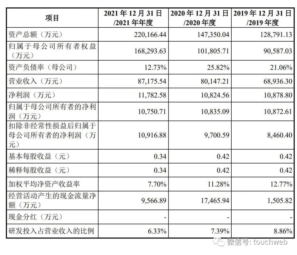 招股书显示,哈铁科技2019年、2020年、2021年营收分别为6.89亿元、8亿元、8.72亿元;净利分别为1.09亿元、1.08亿元、1.18亿元;扣非后净利分别为8460.4万元、9701万元、1.09亿元。