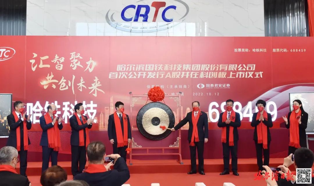 10月12日上午,哈尔滨国铁科技集团股份有限公司首次公开发行A股并在科创板上市仪式举行,公司股票成功在上海证券交易所科创板挂牌上市。哈铁科技公司是黑龙江省轨道交通领域首家上市的科创板企业、省内市值最大的科创板上市企业,也是全国铁路第8家上市公司。省委常委、副省长王一新,市委副书记、市长张起翔出席仪式并致辞,共同为其鸣锣开市。市领导闫红蕾、郭顺民出席活动。