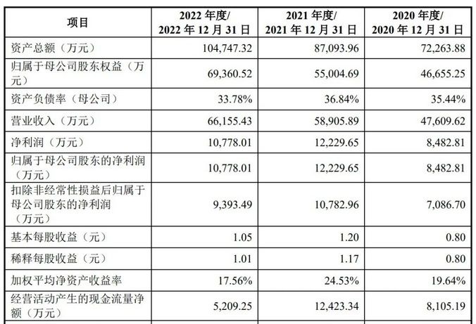 业绩方面,友车科技近年来营收整体稳定增长,净利润有小幅波动。2020年-2022年,营业收入分别为4.76亿元,5.89亿元,6.62亿元,2022年营业收入同比增长12.31%;归母净利润分别为0.85亿元,1.22亿元,1.08亿元,2022年归母净利润同比降低11.87%。